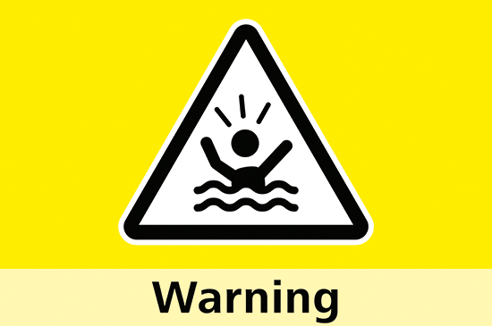 Er is kans op instortings- & verstikkingsgevaar. - Spring niet van golfbrekers of andere bouwwerken.