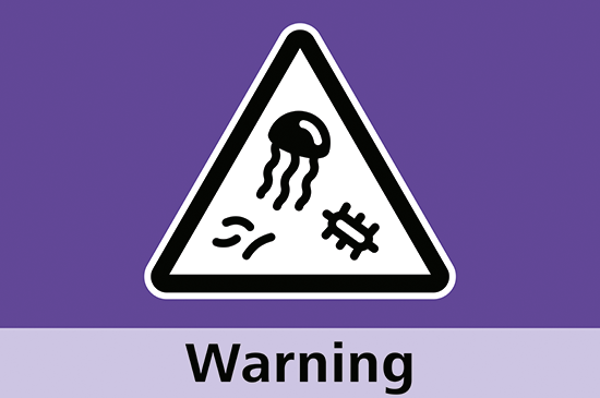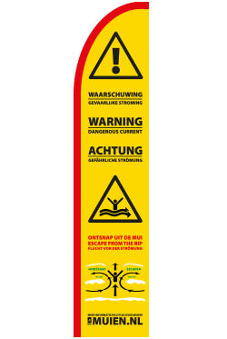 Markeert de locatie van een mui. Kan ter ondersteuning gebruikt worden in een gebied dat gevaarlijk is door muien. Zwemmen wordt ten zeerste afgeraden. Lifeguards waarschuwen actief over de onveilige situatie.